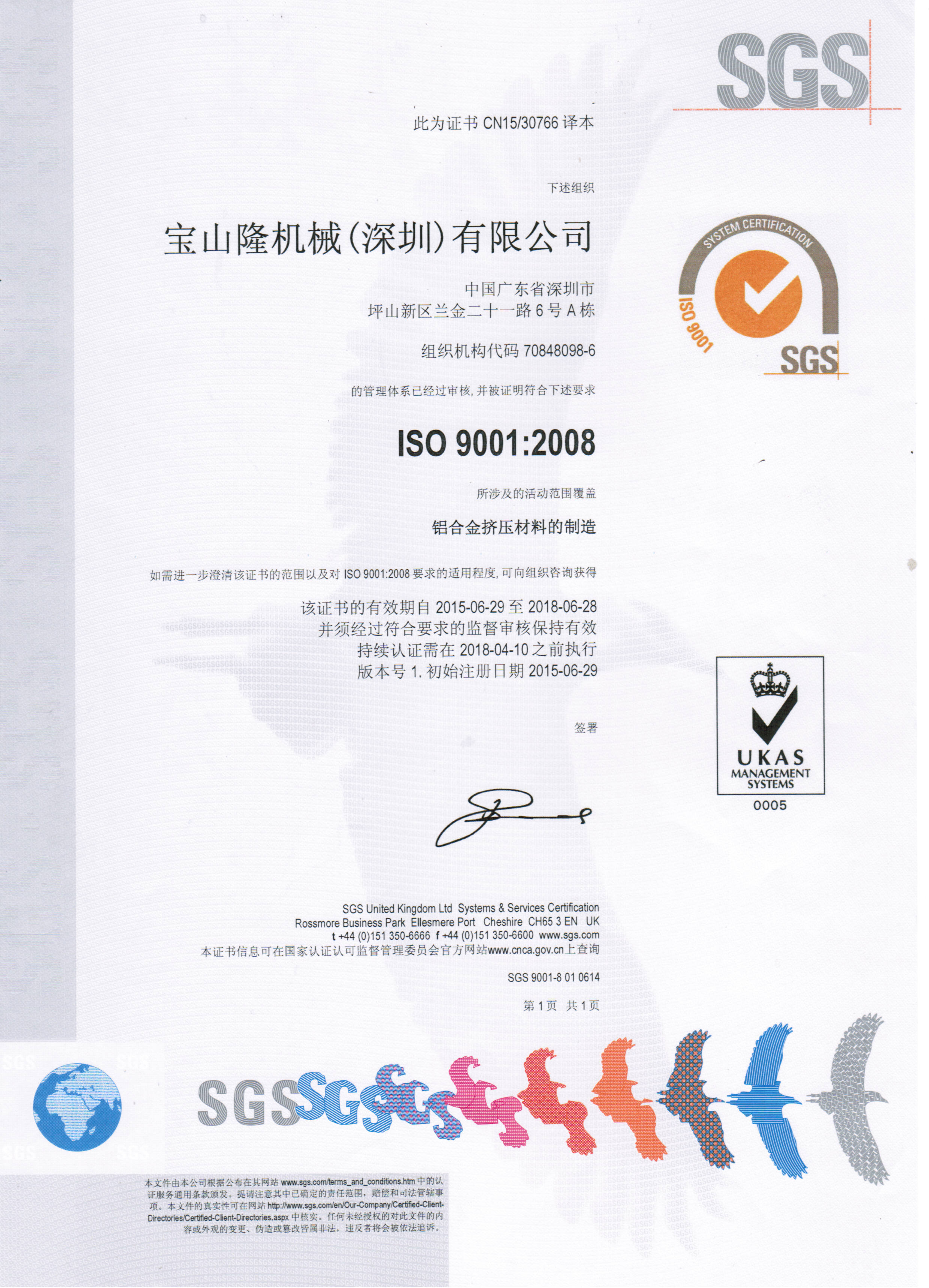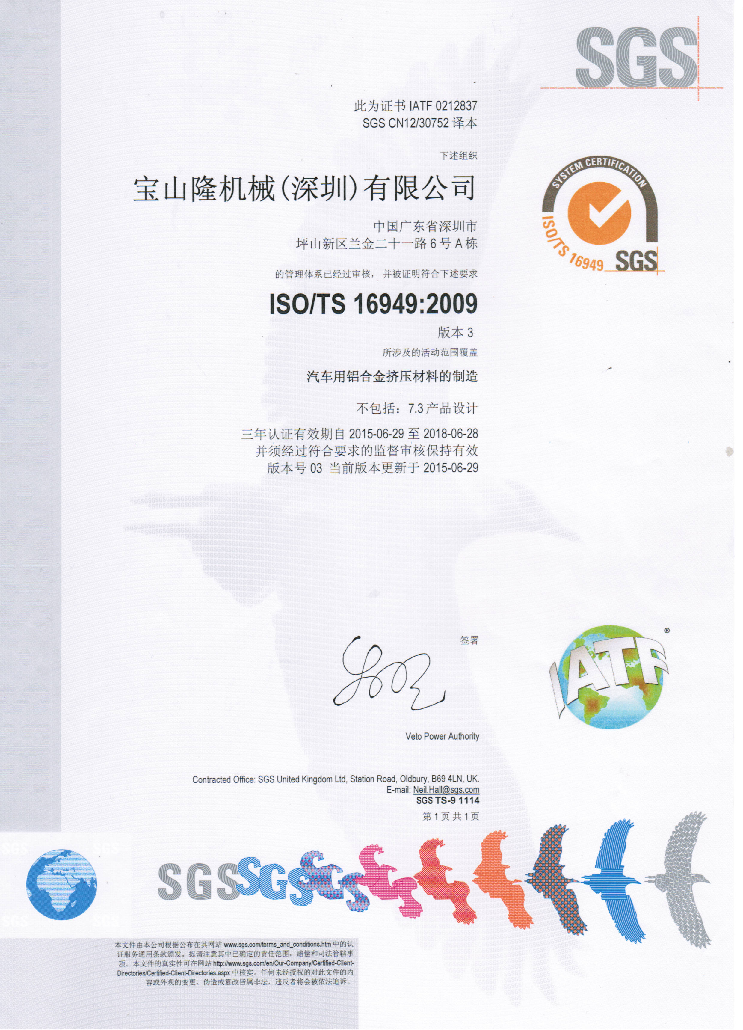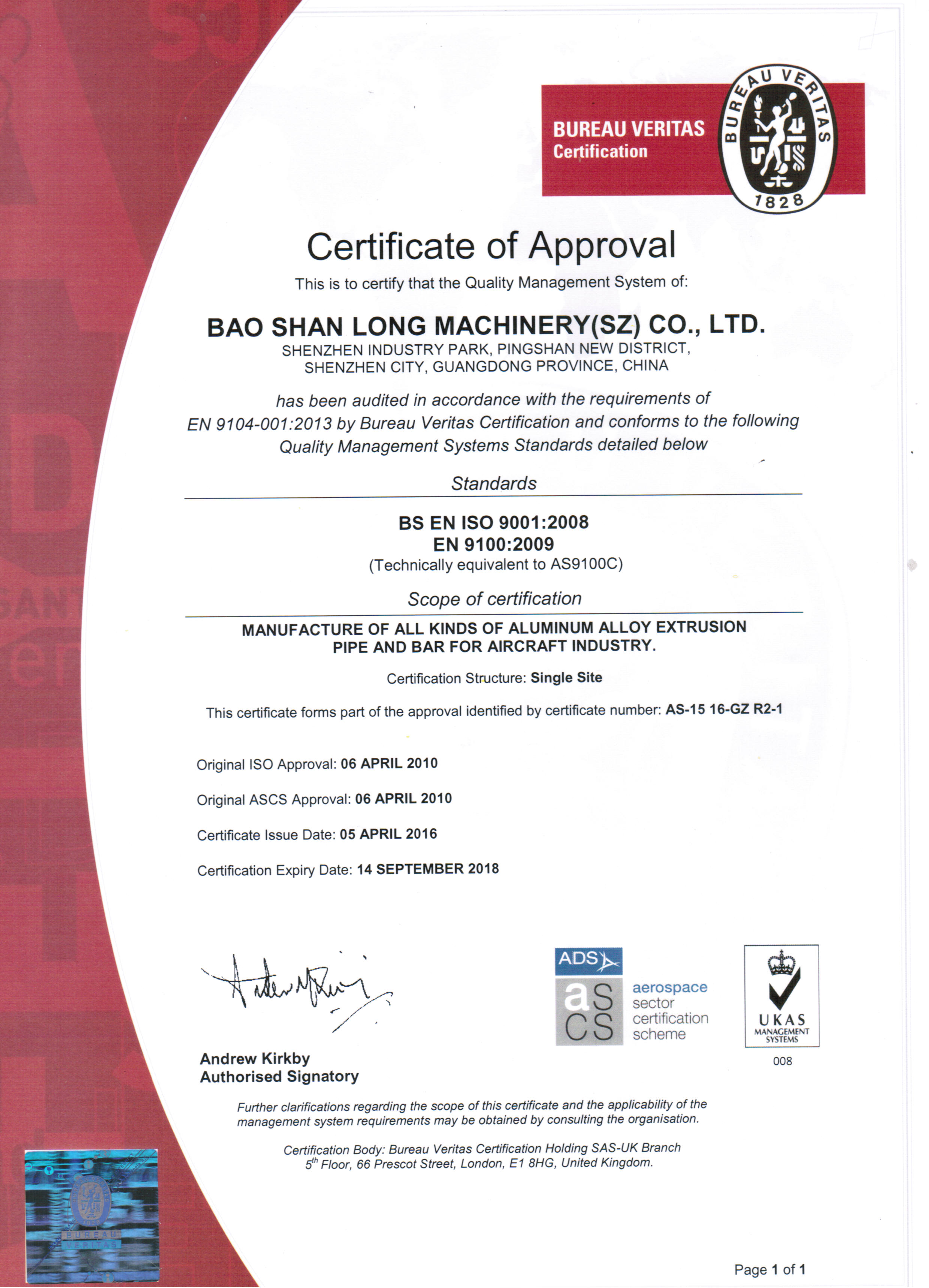 我們自2009年07月開始實行AS9100航天航空體系認證,並於2010年03月取得AS9100航天航空體系的認證證書。