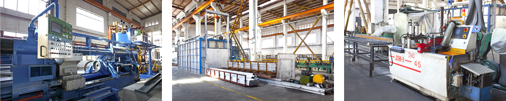 為達我司揭示之目標,本公司備有1台2500噸,3台1800噸,1台1100噸,2台880噸及1台550噸擠型機。具有月產能1050-1500噸之實力,以供應市場需求,並備有全套檢驗儀器,以為進料、出貨品質保證用途。另外,為了給予客戶更廣泛的服務,我司更與優良廠商建立戰略聯盟,提供了超大型8000噸級的擠型機。我們還能夠提供鍛造、CNC加工、壓鑄、油壓成型、陽極以及各種表面處理等服務,以祈滿足客戶深加工之需求。